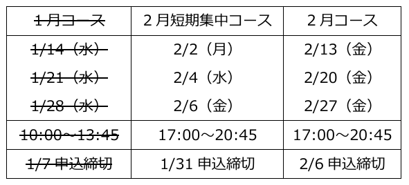 本講座は1月~2月にかけて3回実施します。