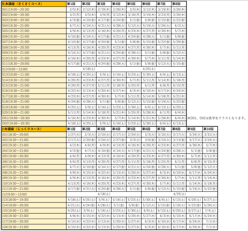 開講スケジュール